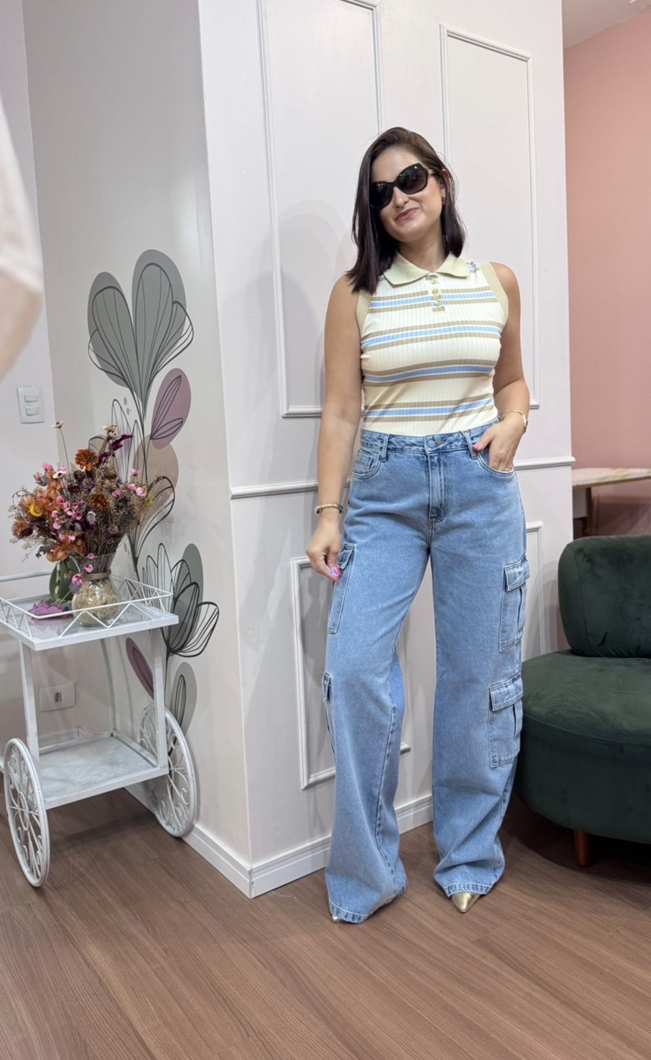 Body em malha confort listrado com gola pólo e botões dourado no decote. Fechamento com ganchinho na calcinha.