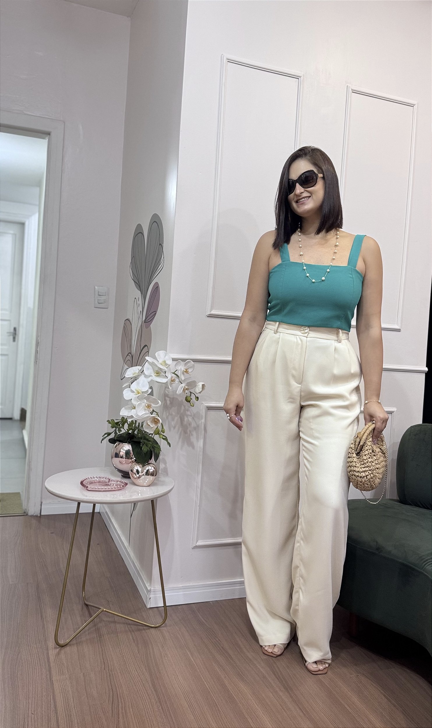 Cropped em alfaiataria crepe com alças, decote quadrado, detalhe de elástico na alça costa, Fechamento com zíper destacável. Possui forro. P=36/38 Busto: 90 Comprimento: 38 M: 40 Busto: 96 Comprimento: 39 G=42 Busto: 102 Comprimento: 40