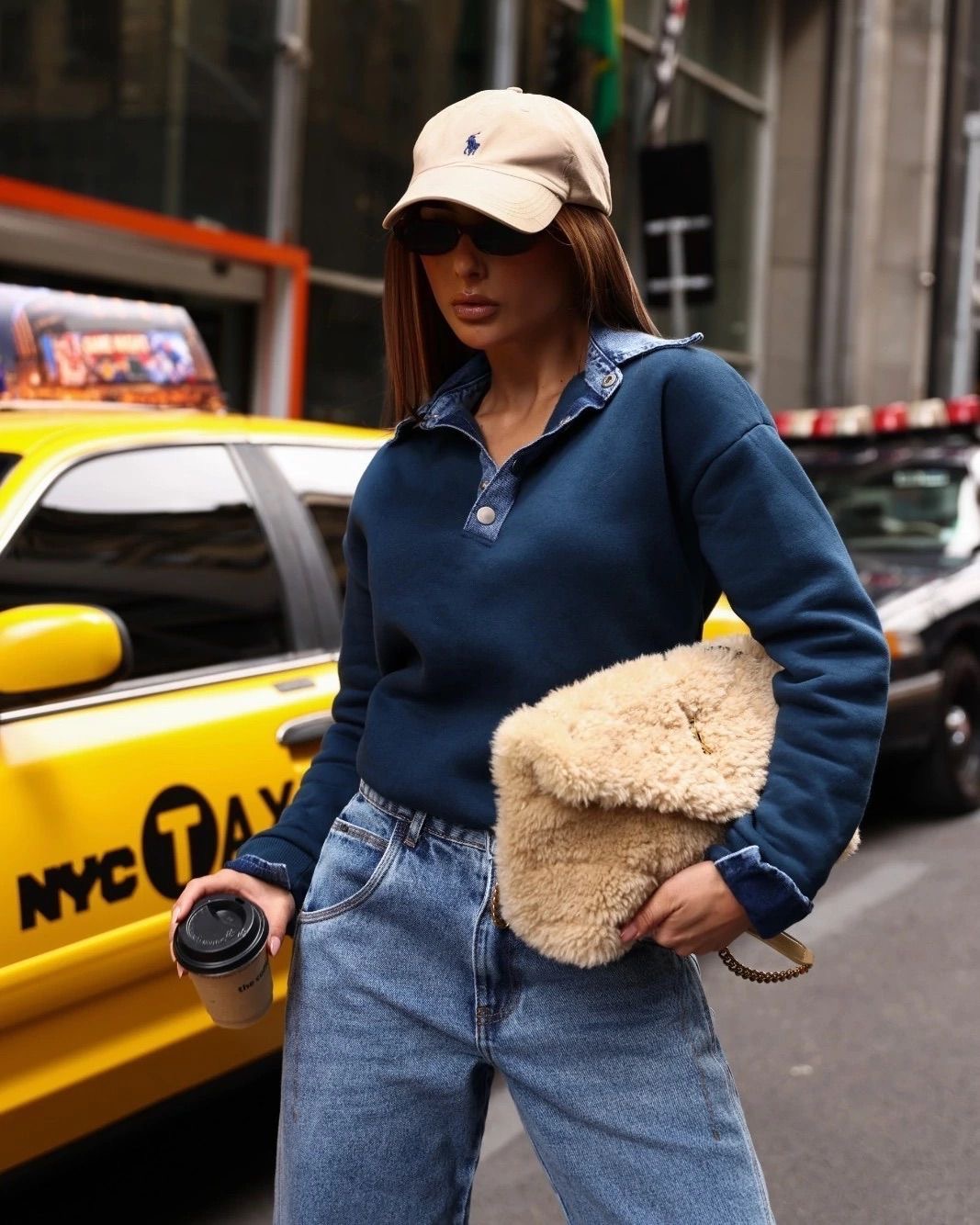 Moletom peluciado com punho e gola jeans